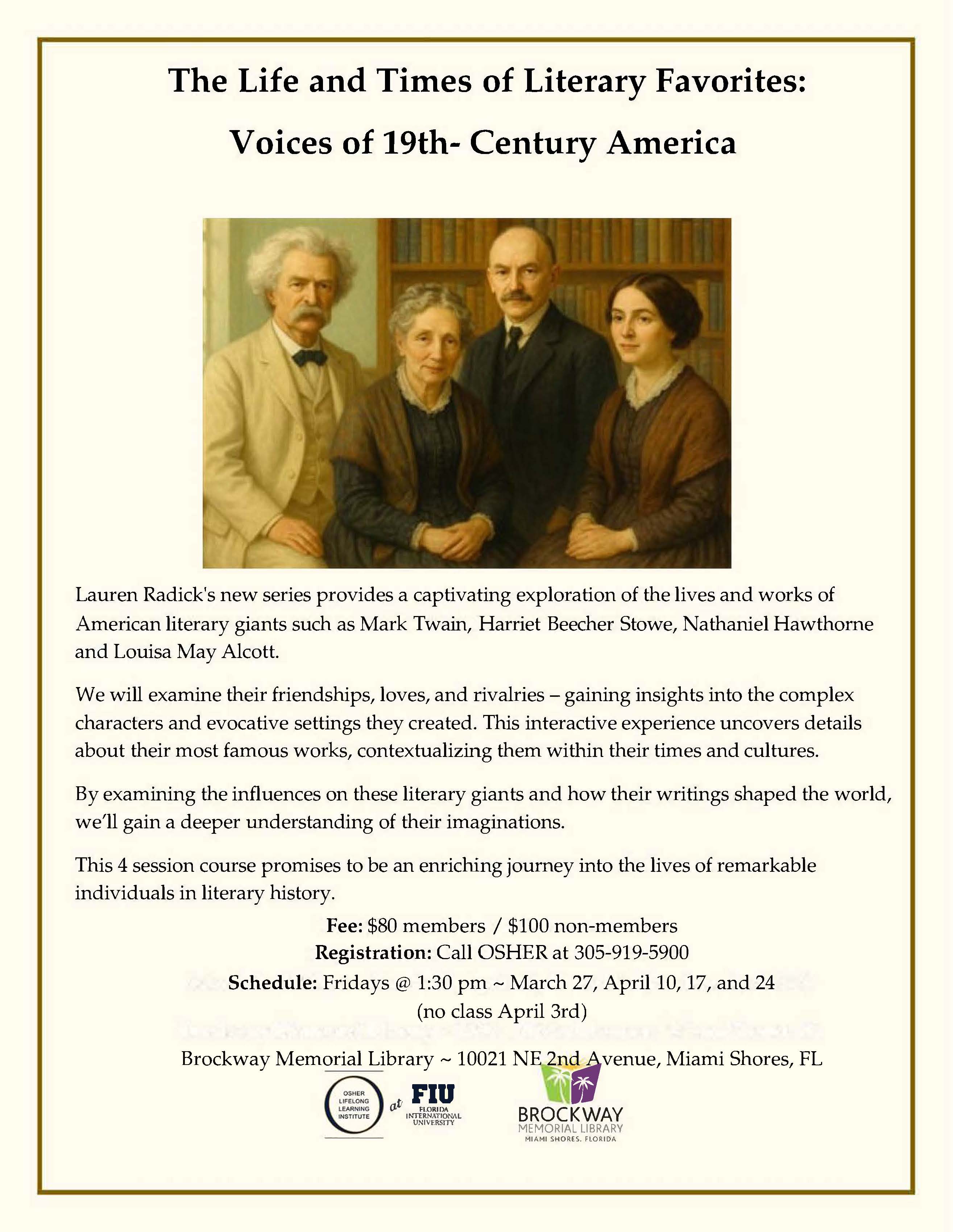 Library: OSHER~The Life & Times of Literary Favorites: Voices of 19th Century America
